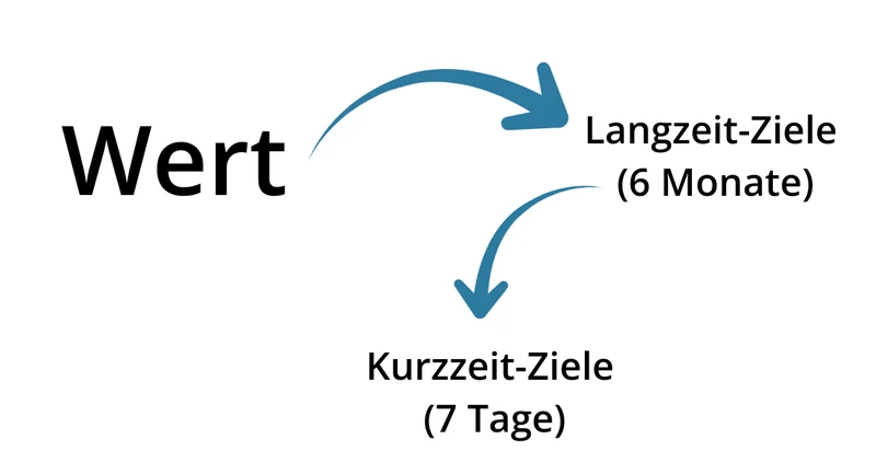 Mit anderen Worten, Werte geben uns die Richtung vor und Ziele helfen uns, auf dem Weg zu bleiben. Versuchen wir nun, ein langfristiges Ziel basierend auf einem Ihrer Werte zu setzen.