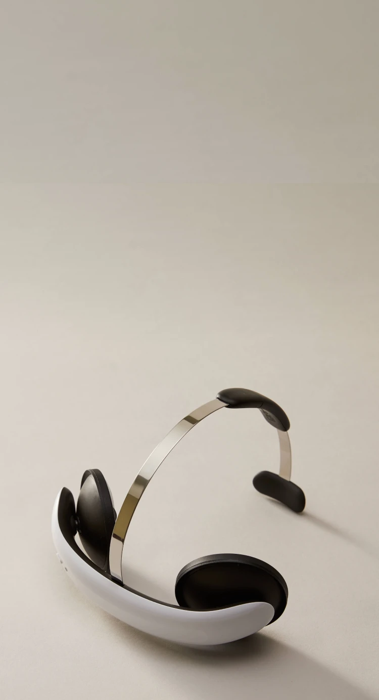 Flow nutzt sanfte elektrische Impulse über Pads an der Stirn. Die Sitzungen dauern 30 Minuten und werden über die App geführt.